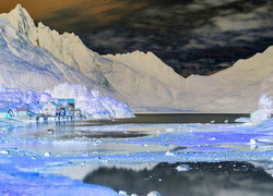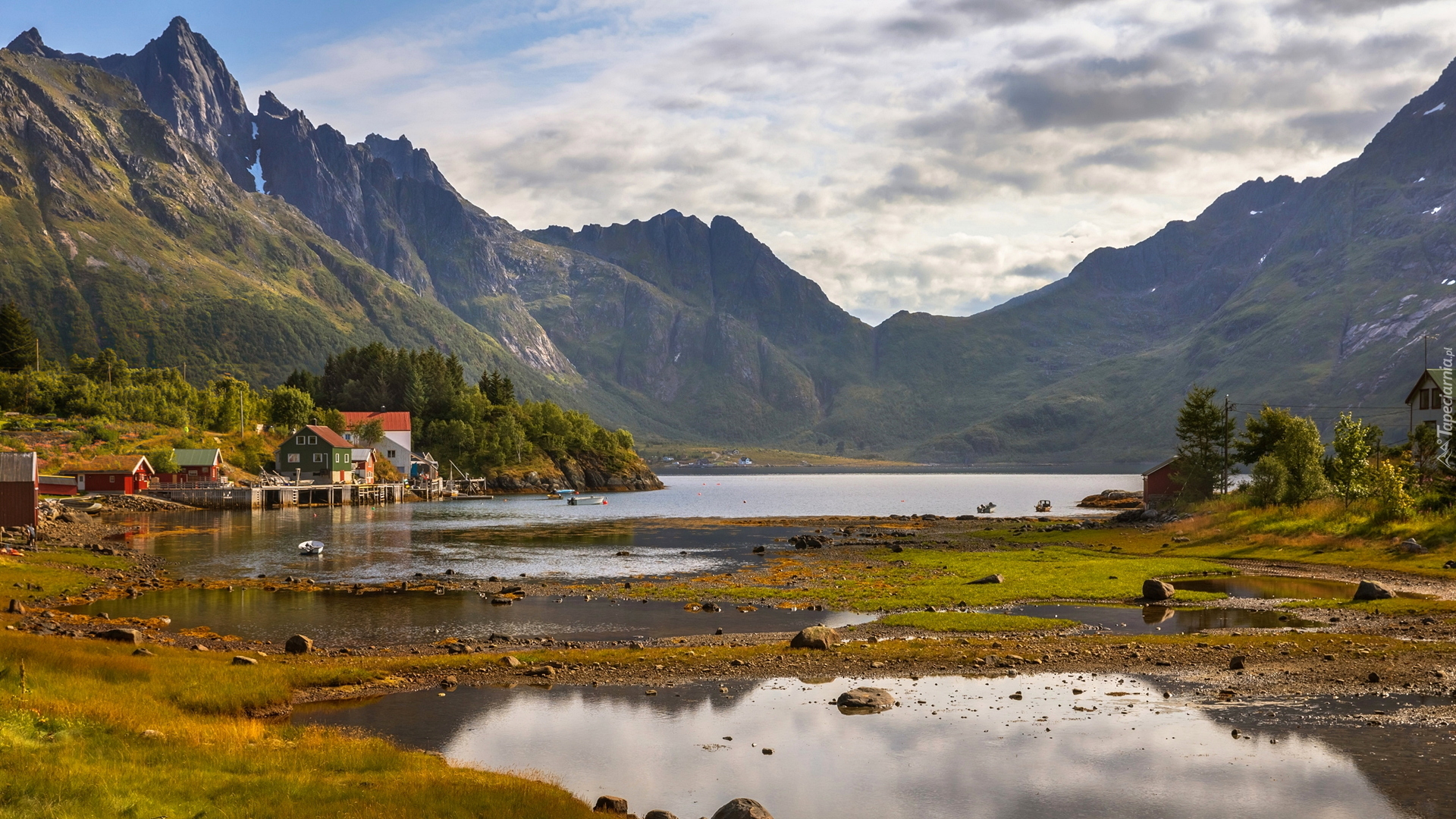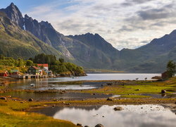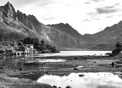 Edytor tapety: Domki nad górskim jeziorem na Lofotach