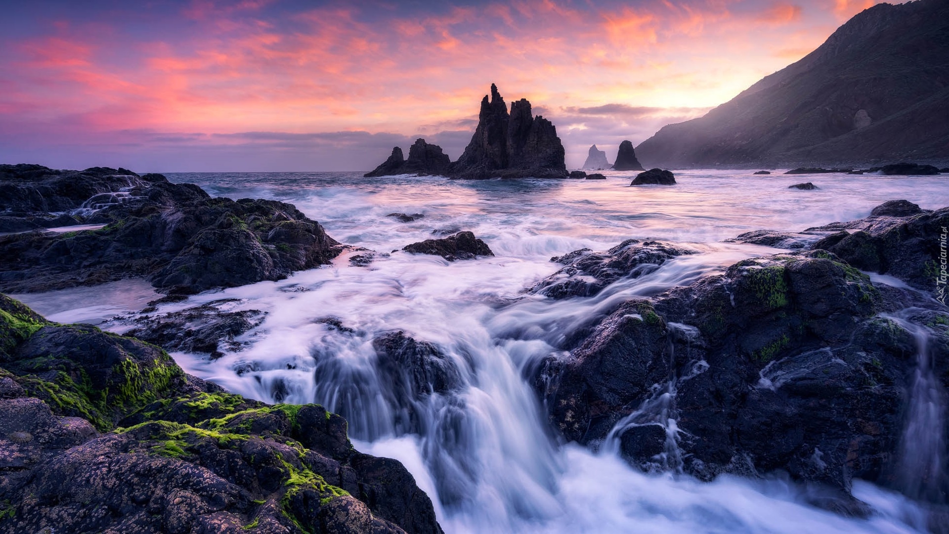 Edytor tapety: Skały na morzu w porannym świetle