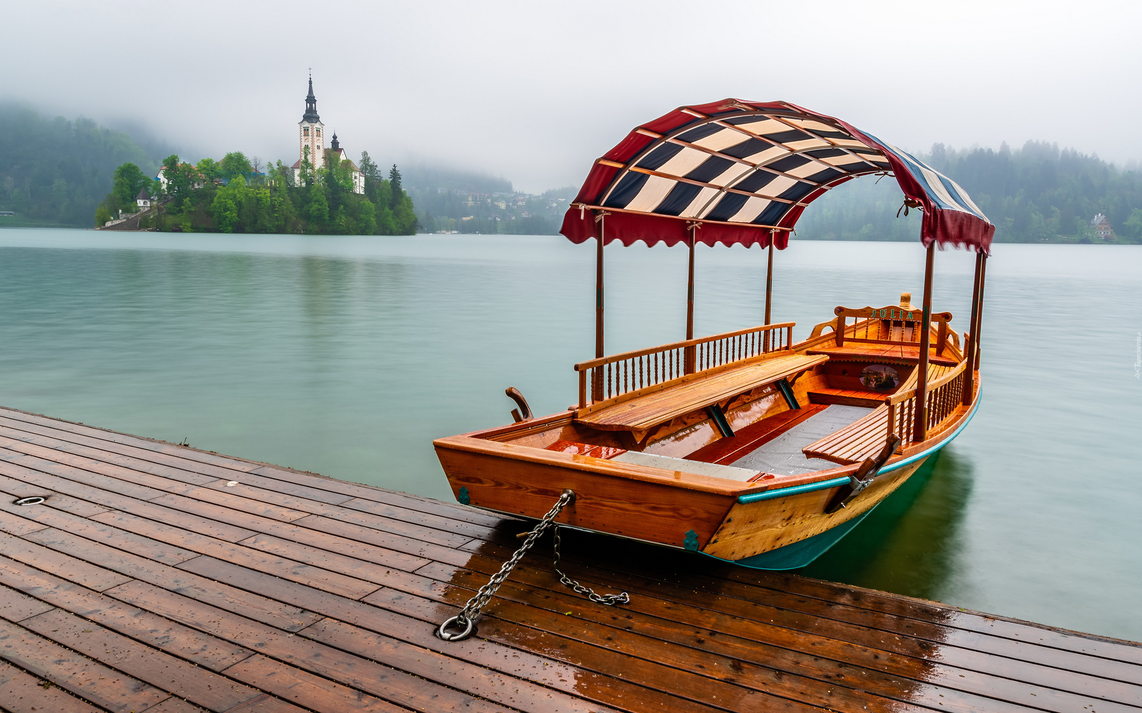 Edytor tapety: Łódka przy pomoście na jeziorze Bled