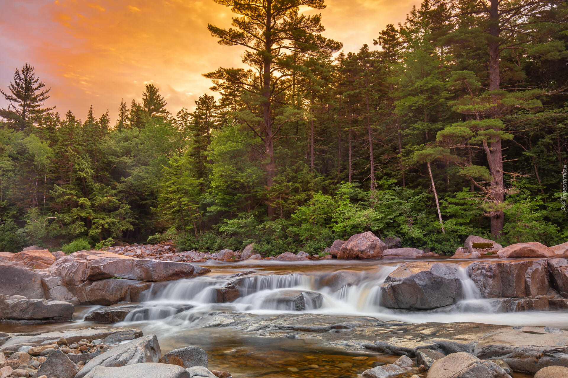 Edytor tapety: Zielone drzewa na brzegu leśnej rzeki