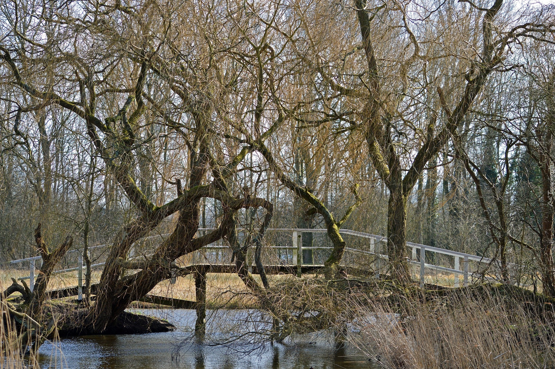 Edytor tapety: Wierzba płacząca obok mostku