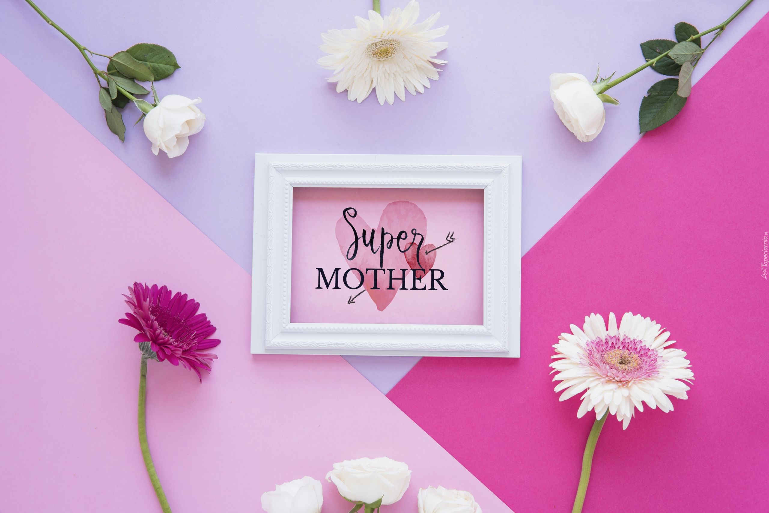 Edytor tapety: Kwiaty przy ramce z napisem Super Mother