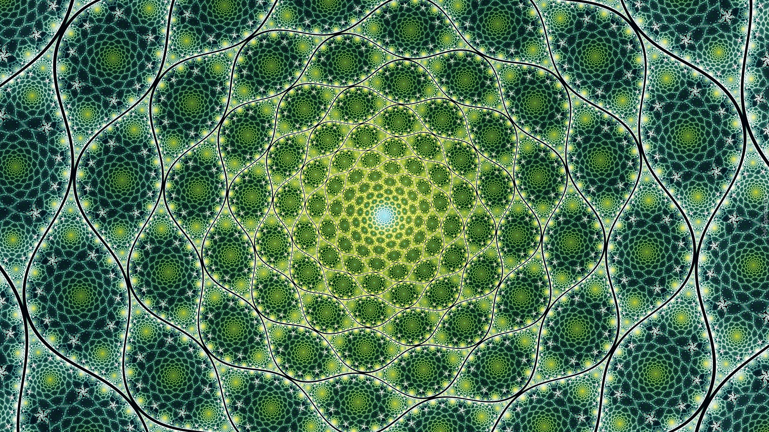 Edytor tapety: Świecący punkt na zielonym tle fraktala