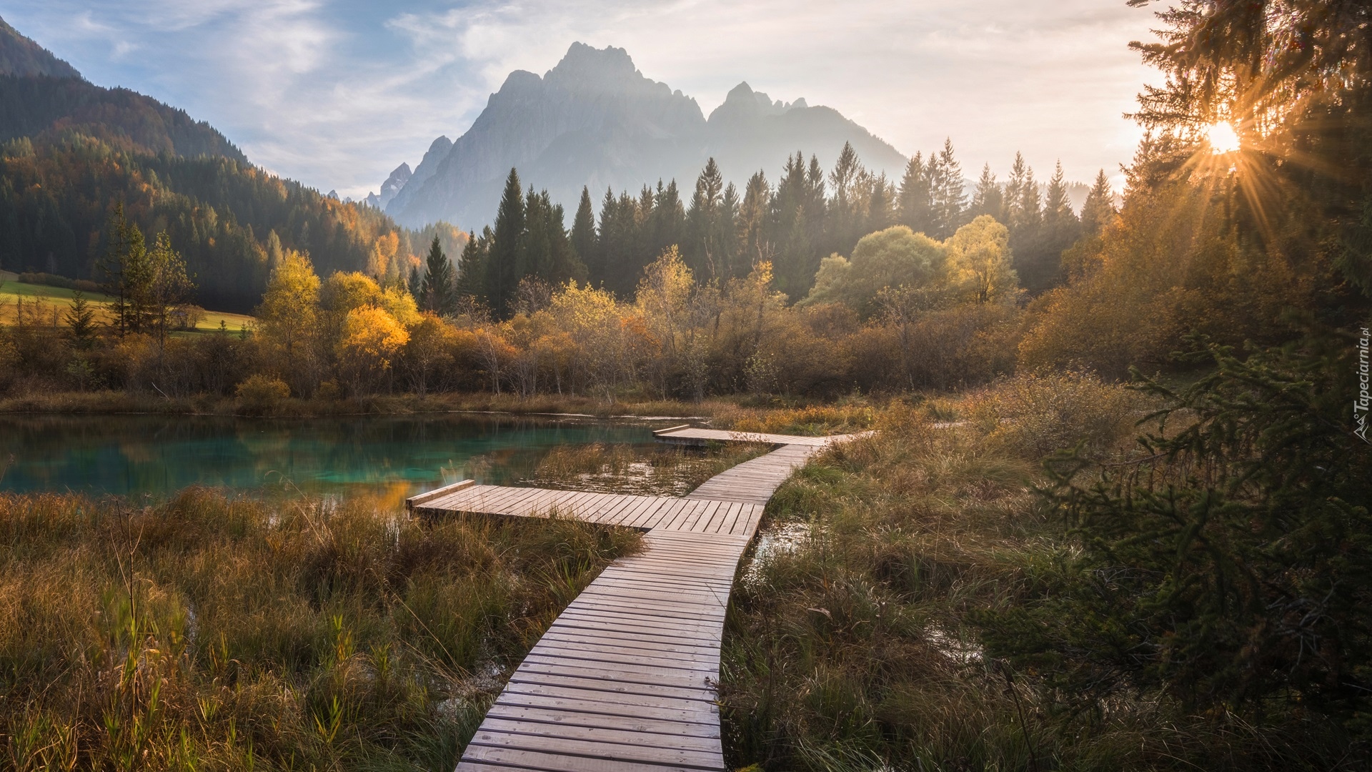 Edytor tapety: Drewniany pomost obok jeziorka Zelenci