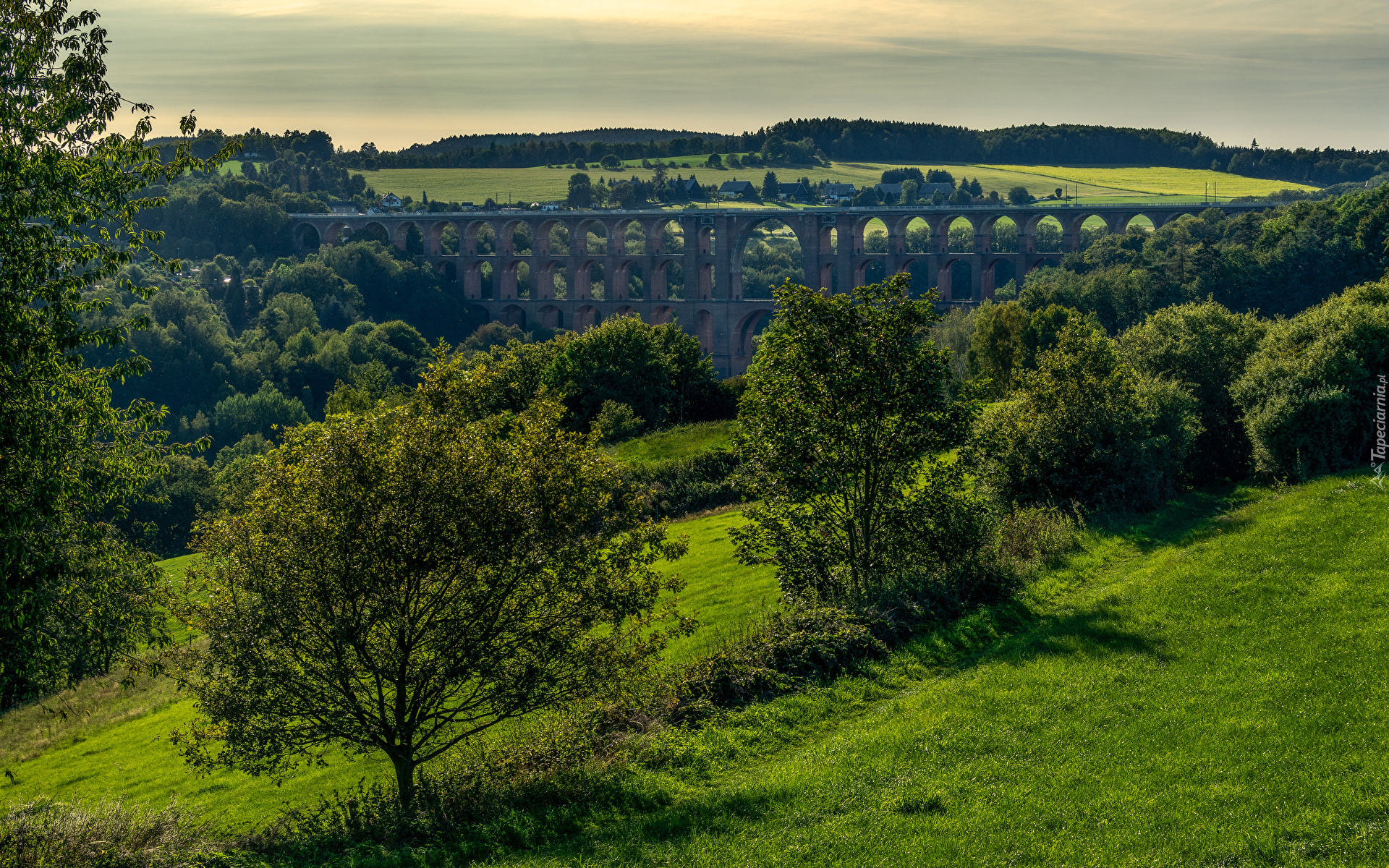 Edytor tapety: Widok z łąki na most