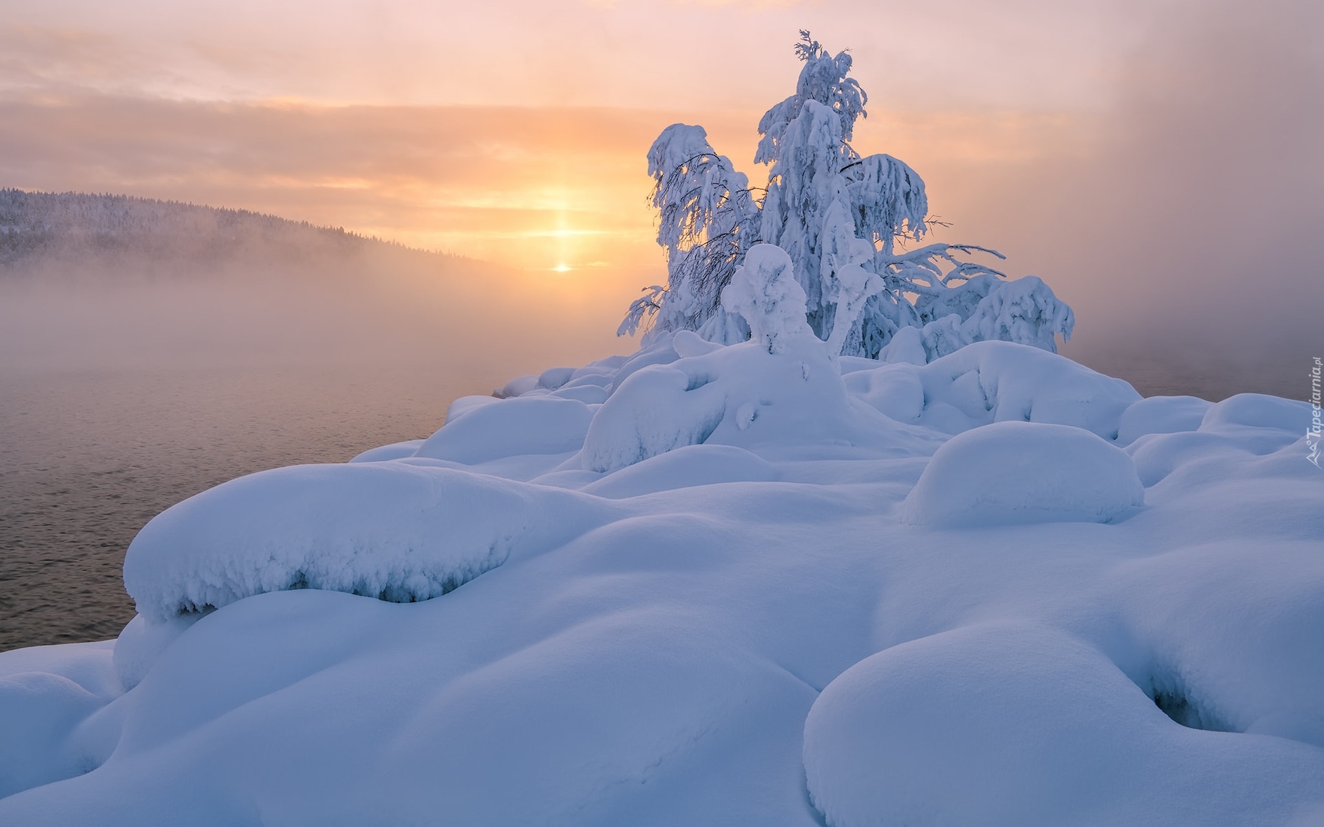 Edytor tapety: Ośnieżone drzewko w zaspach śniegu