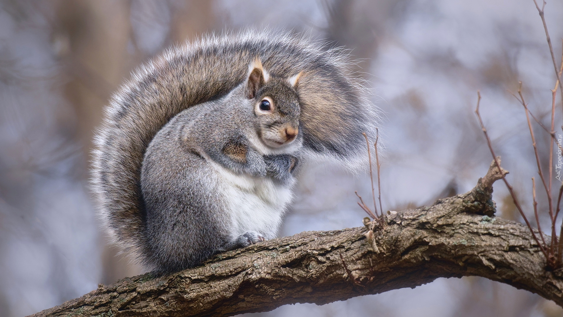 Edytor tapety: Wiewiórka szara na gałęzi