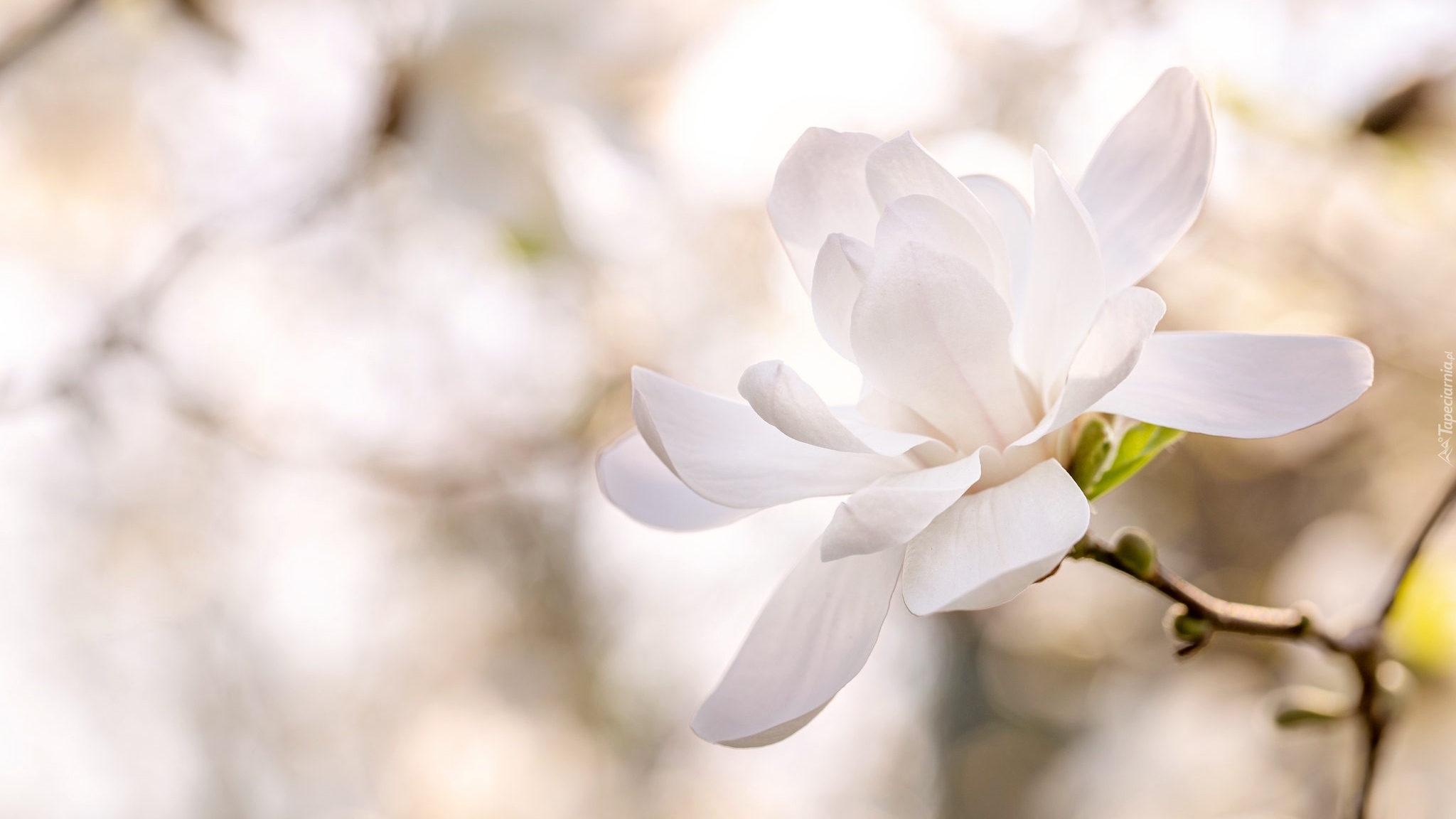 Edytor tapety: Biały kwiat magnolii na gałązce
