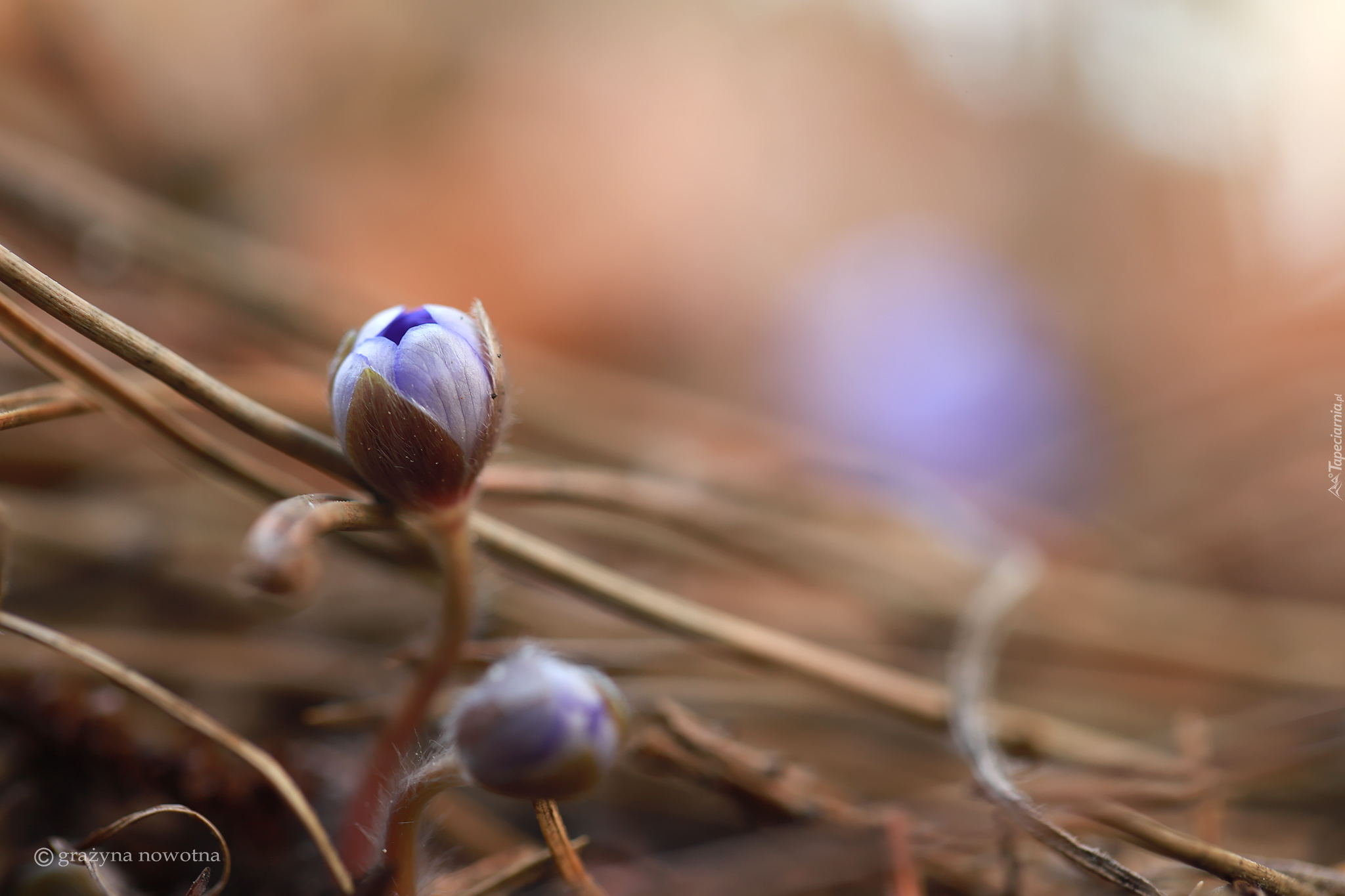 Edytor tapety: Pąki przylaszczki wśród suchych gałązek