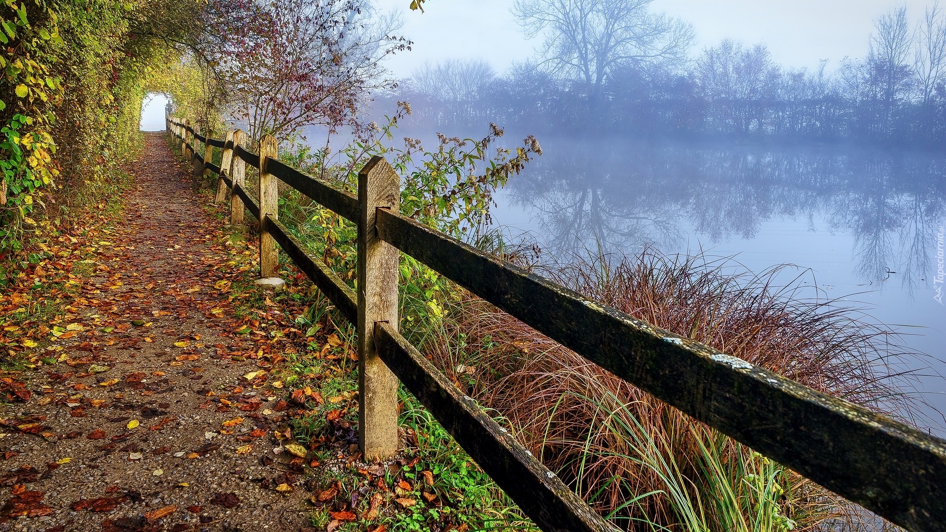 Edytor tapety: Ogrodzenie wzdłuż jeziora