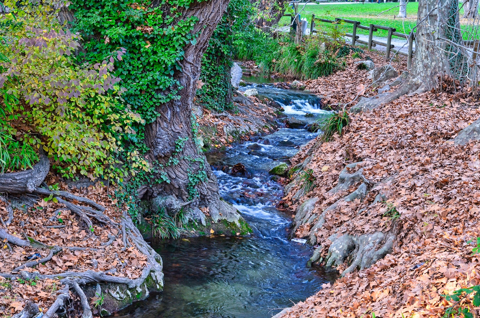 Edytor tapety: Opadłe liście na brzegach strumienia