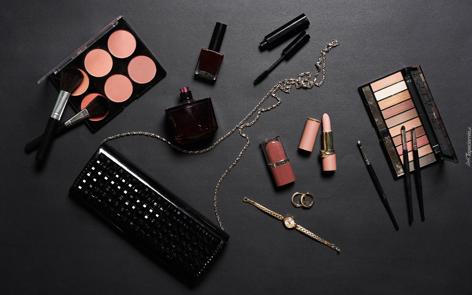 Edytor tapety: Kosmetyki obok perfum i torebki