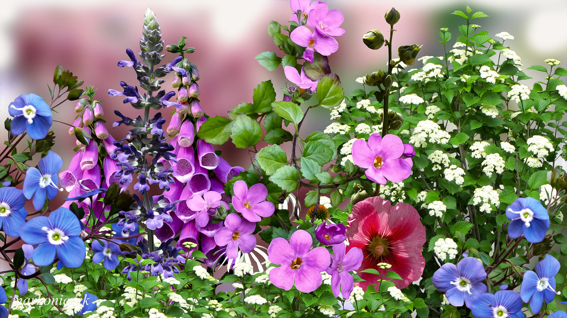 Edytor tapety: Różnokolorowe kwiaty w 2D