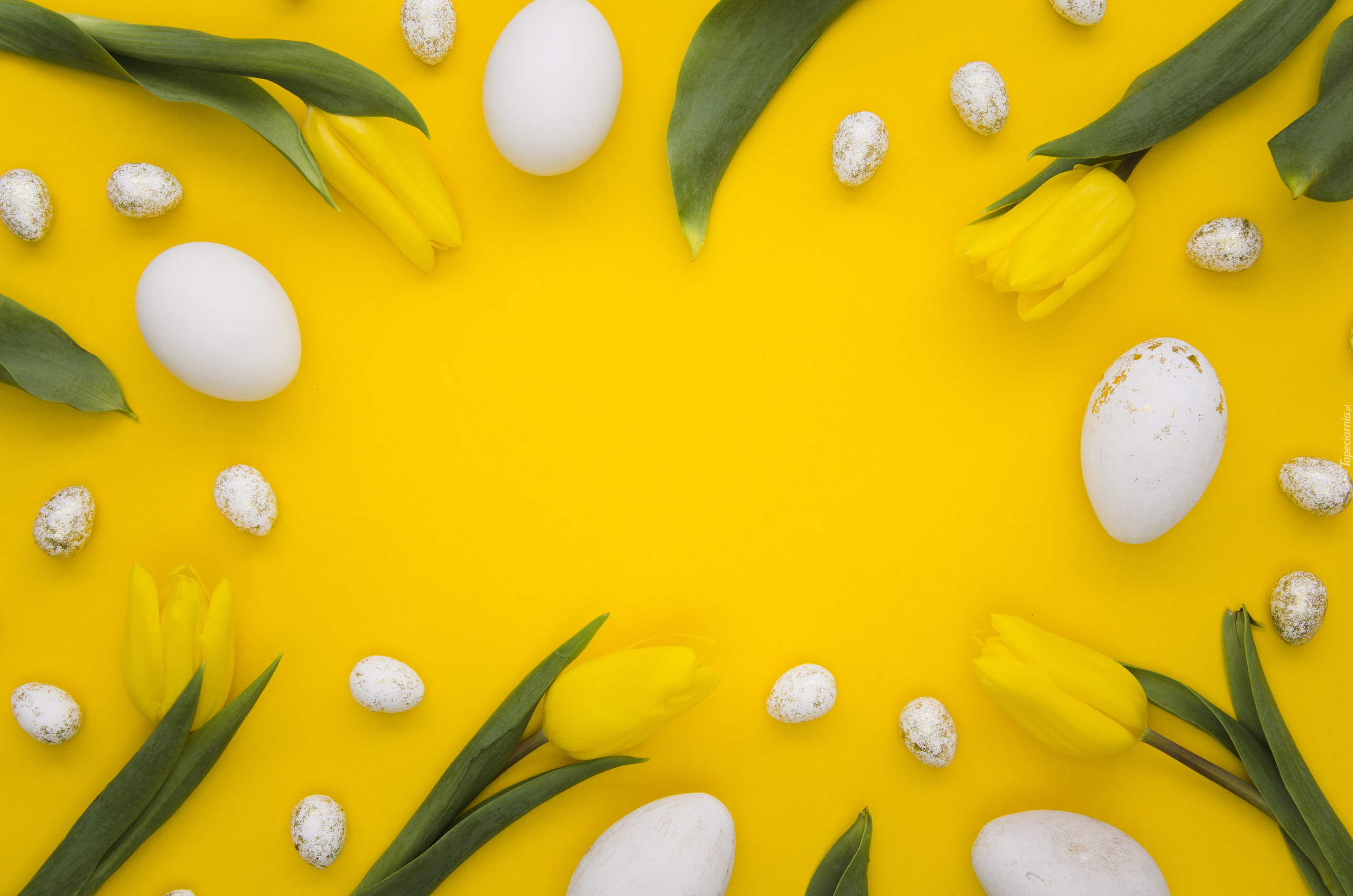 Edytor tapety: Jajeczka i tulipany na żółtym tle