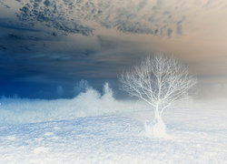 Edytor tapety: Drzewo na łące i wschód słońca