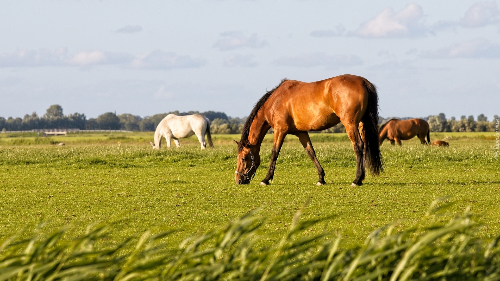 Edytor tapety: Konie na zielonej łące