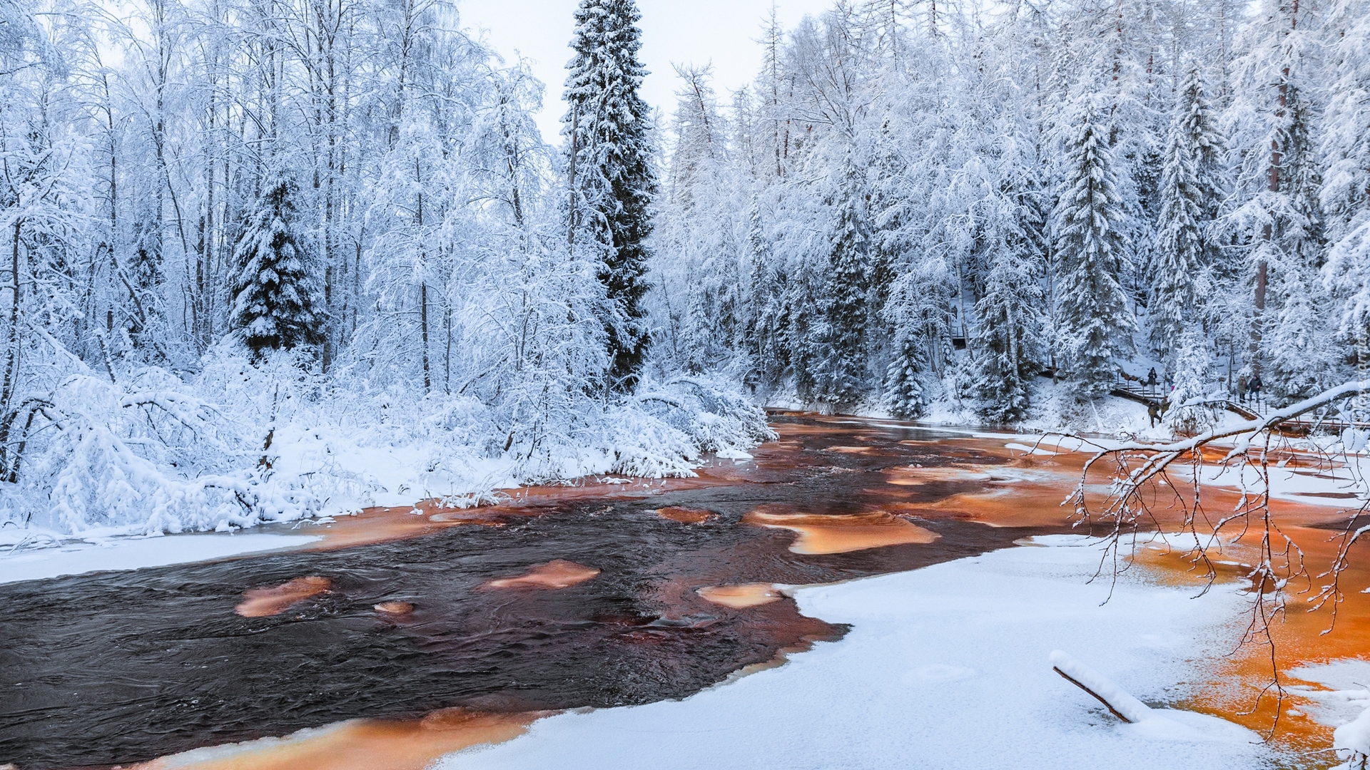 Edytor tapety: Ośnieżona rzeka w lesie