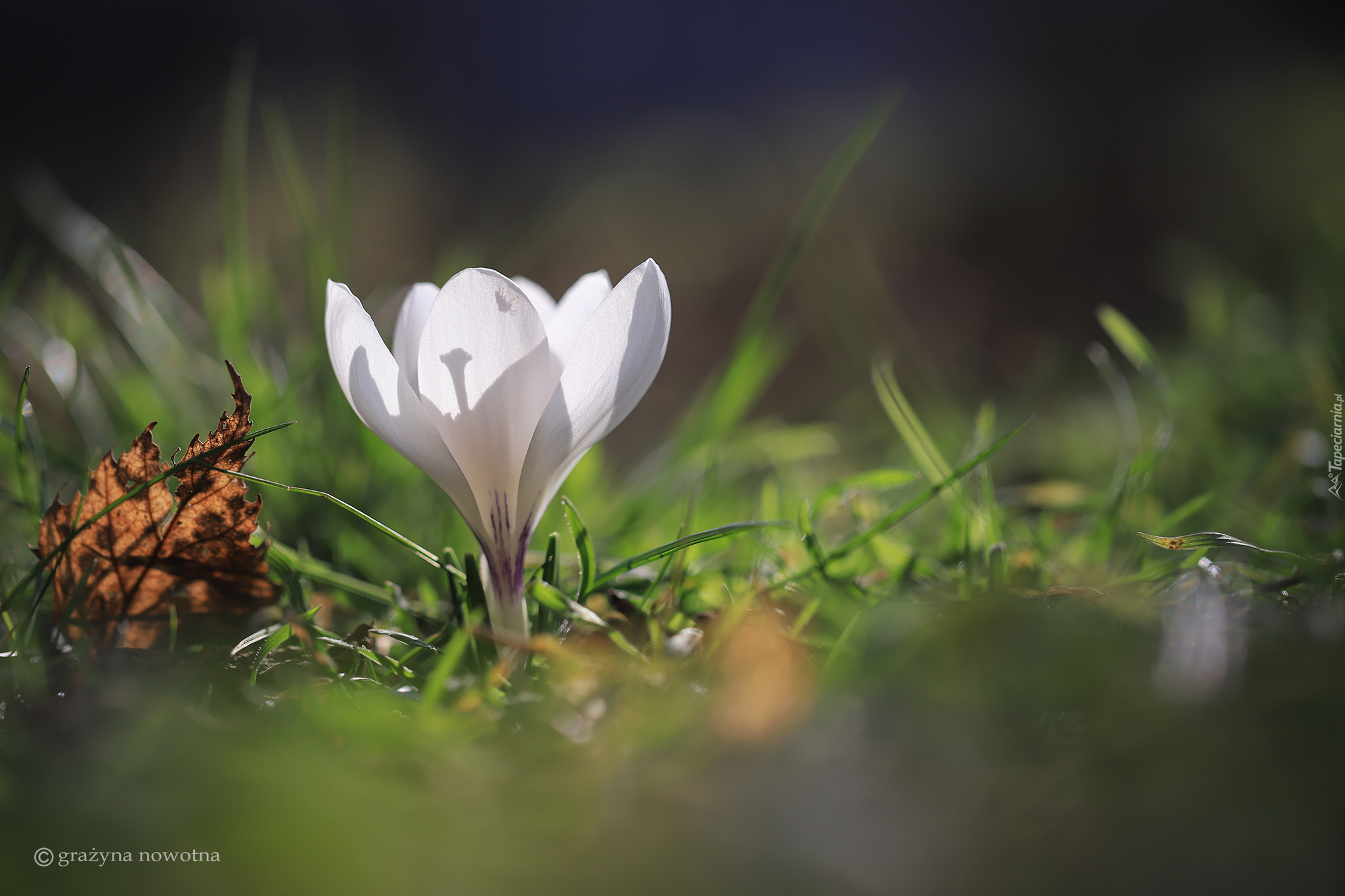 Edytor tapety: Rozkwitnięty biały krokus
