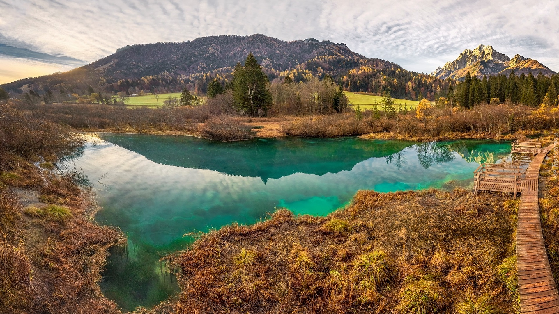Edytor tapety: Drewniany pomost nad jeziorem Zelenci