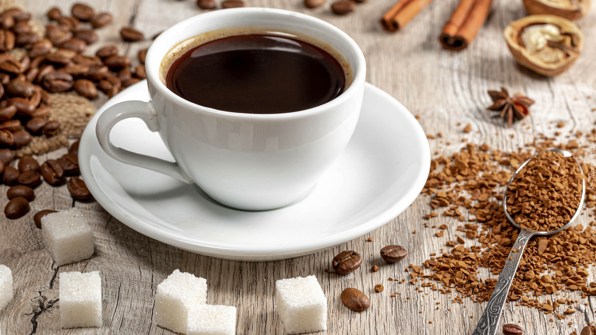 Edytor tapety: Kostki cukru obok filiżanki kawy