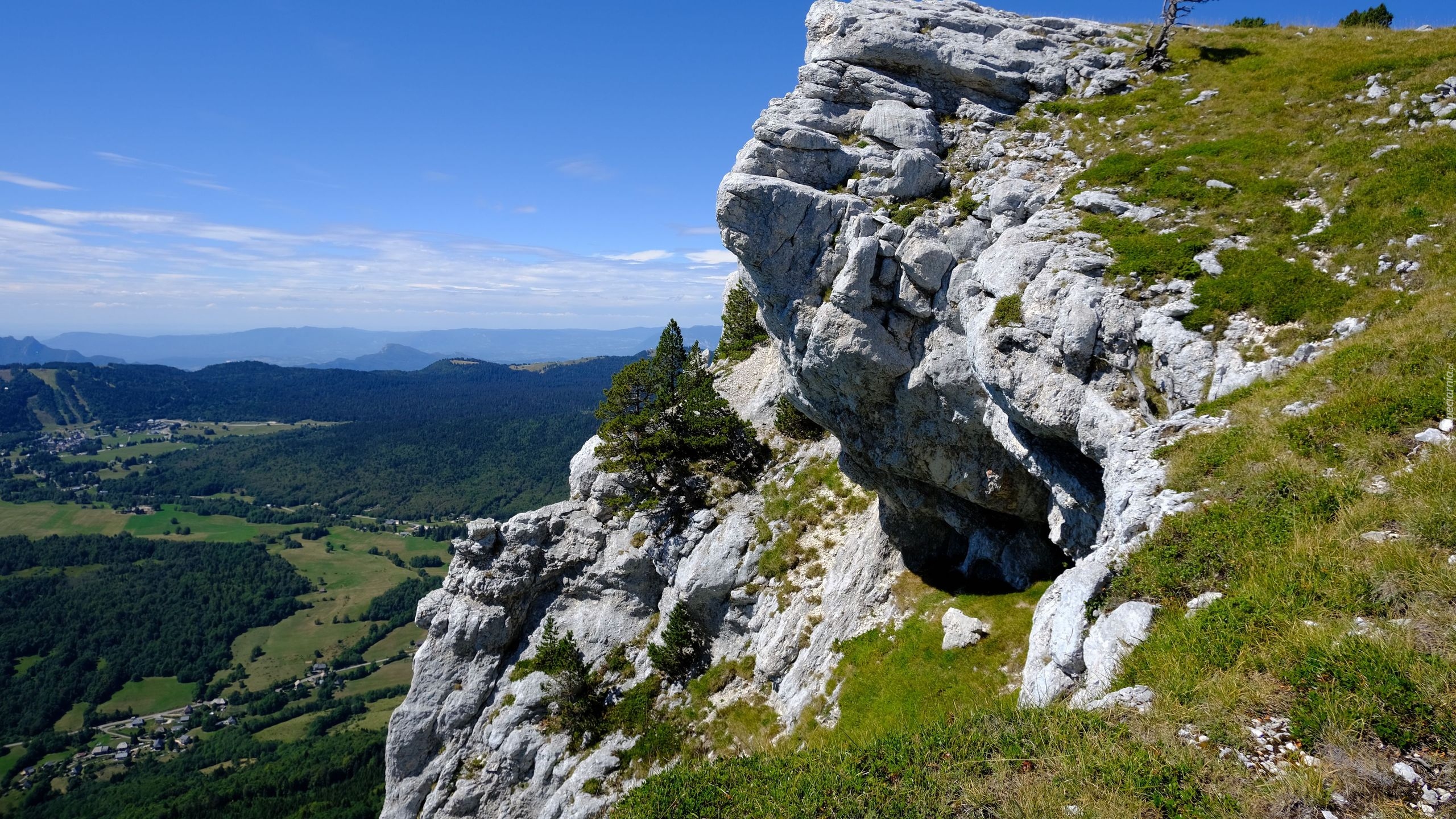 Edytor tapety: Widok ze skał na zabudowania w dolinie