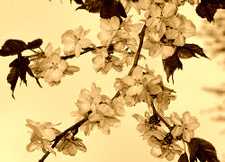 Edytor tapety: Gałązka z różowymi kwiatkami i młodymi listkami