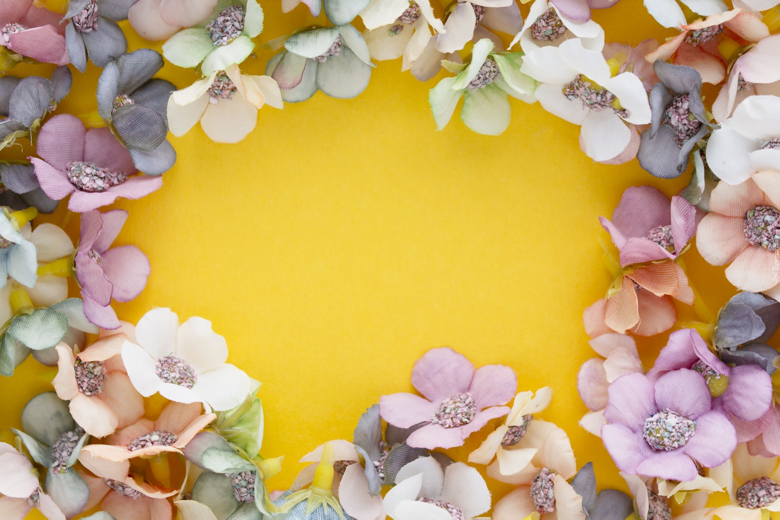 Edytor tapety: Sztuczne kwiaty na żółtym tle