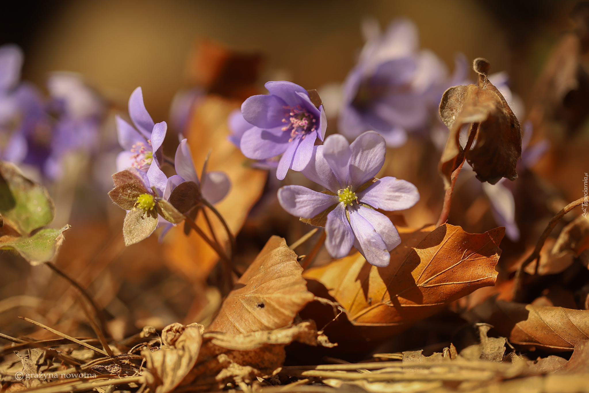 Edytor tapety: Liliowe przylaszczki w suchych liściach