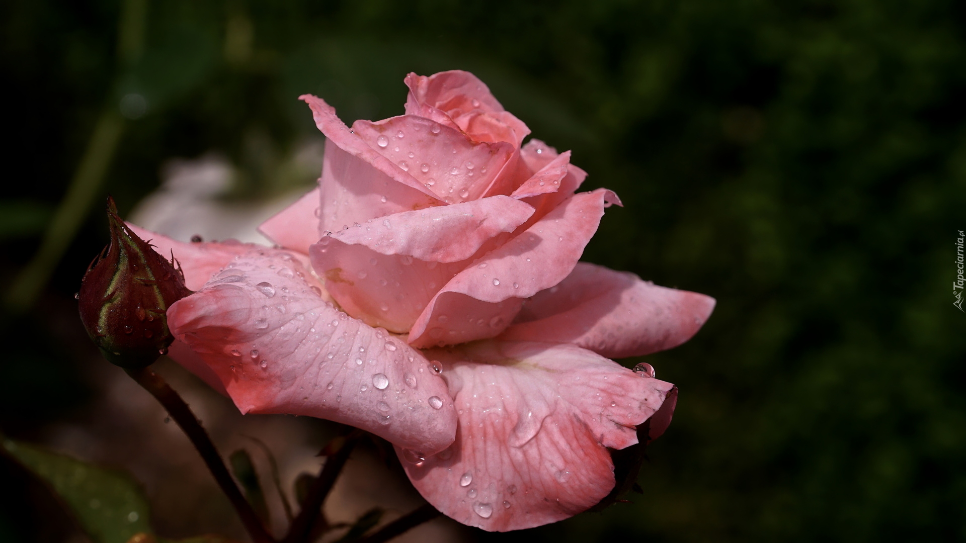 Edytor tapety: Krople wody na różowej róży