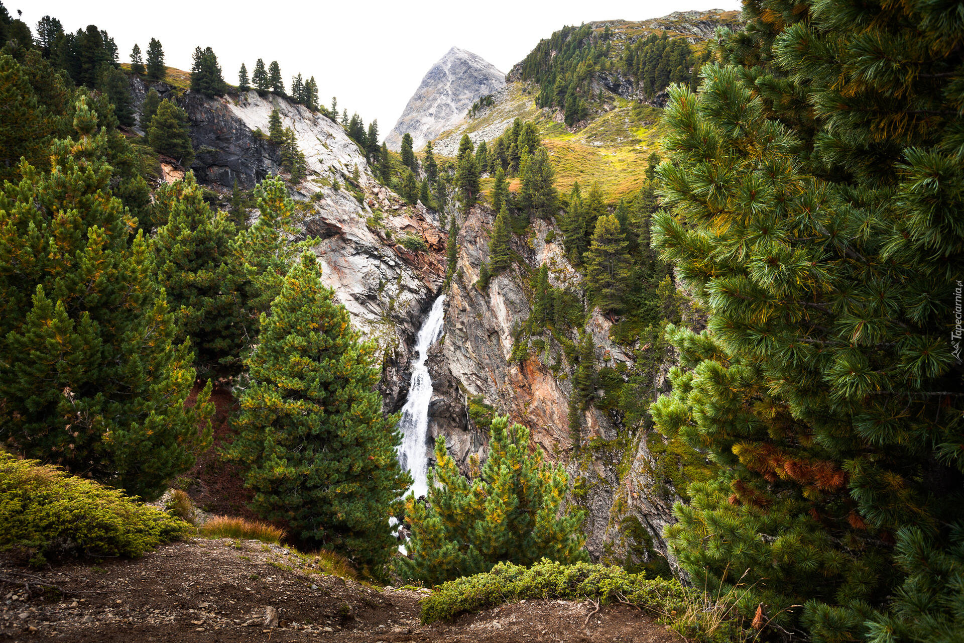 Edytor tapety: Wodospad na skale w austriackiej dolinie Otztal