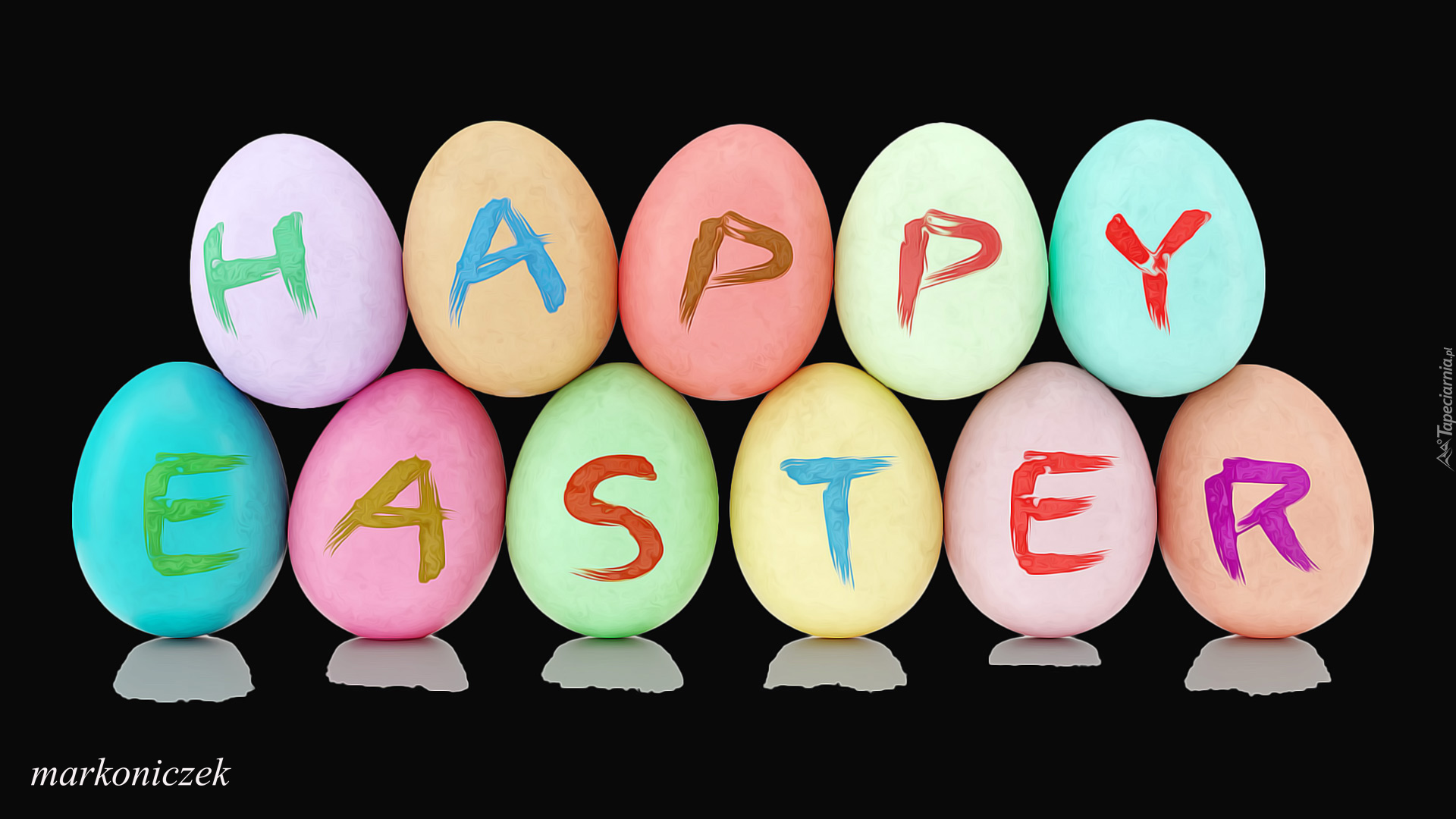 Edytor tapety: Napis Happy Easter na kolorowych jajkach