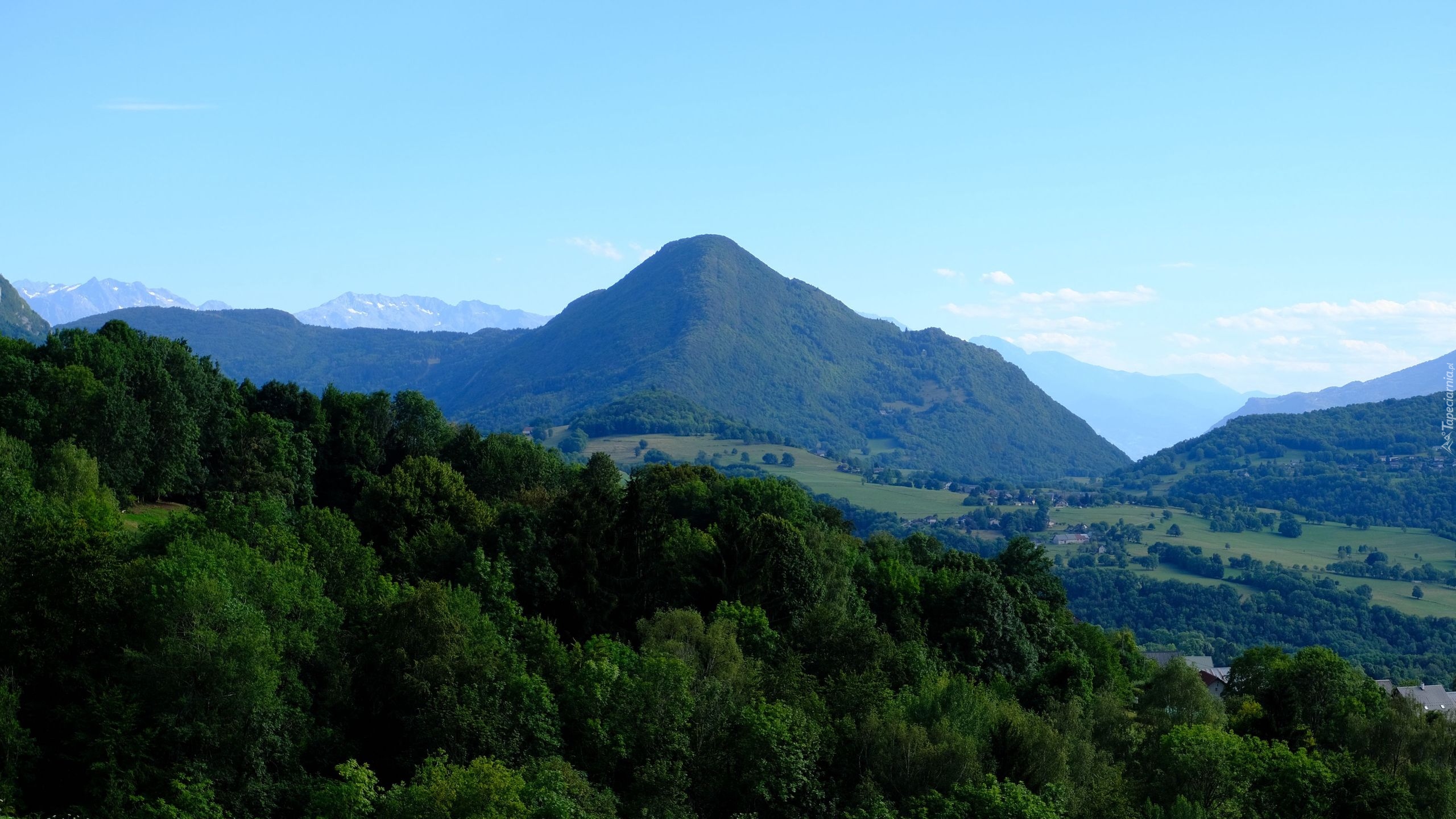 Edytor tapety: Widok na zielone lasy i dolinę w górach