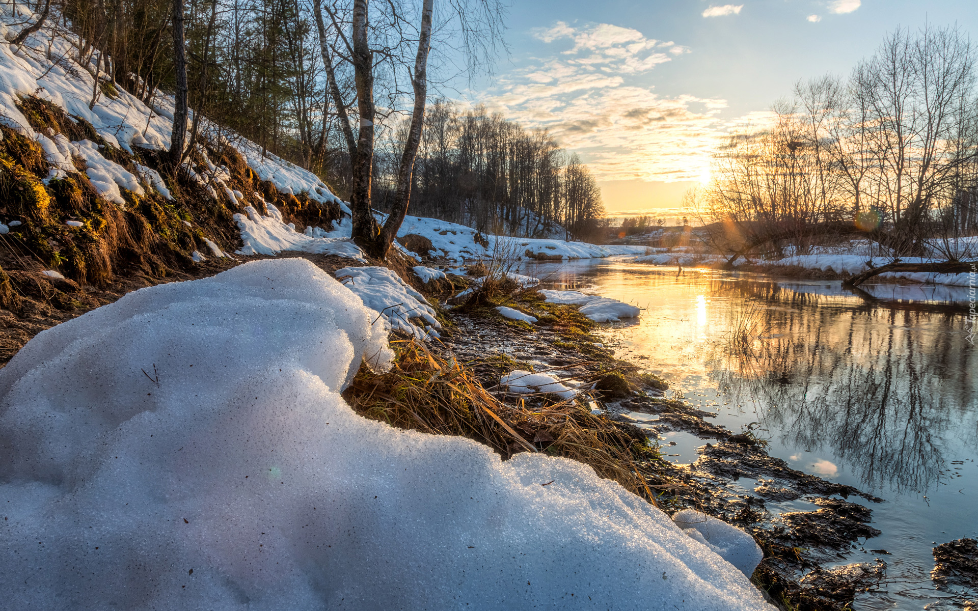 Edytor tapety: Śnieg nad brzegiem rzeki