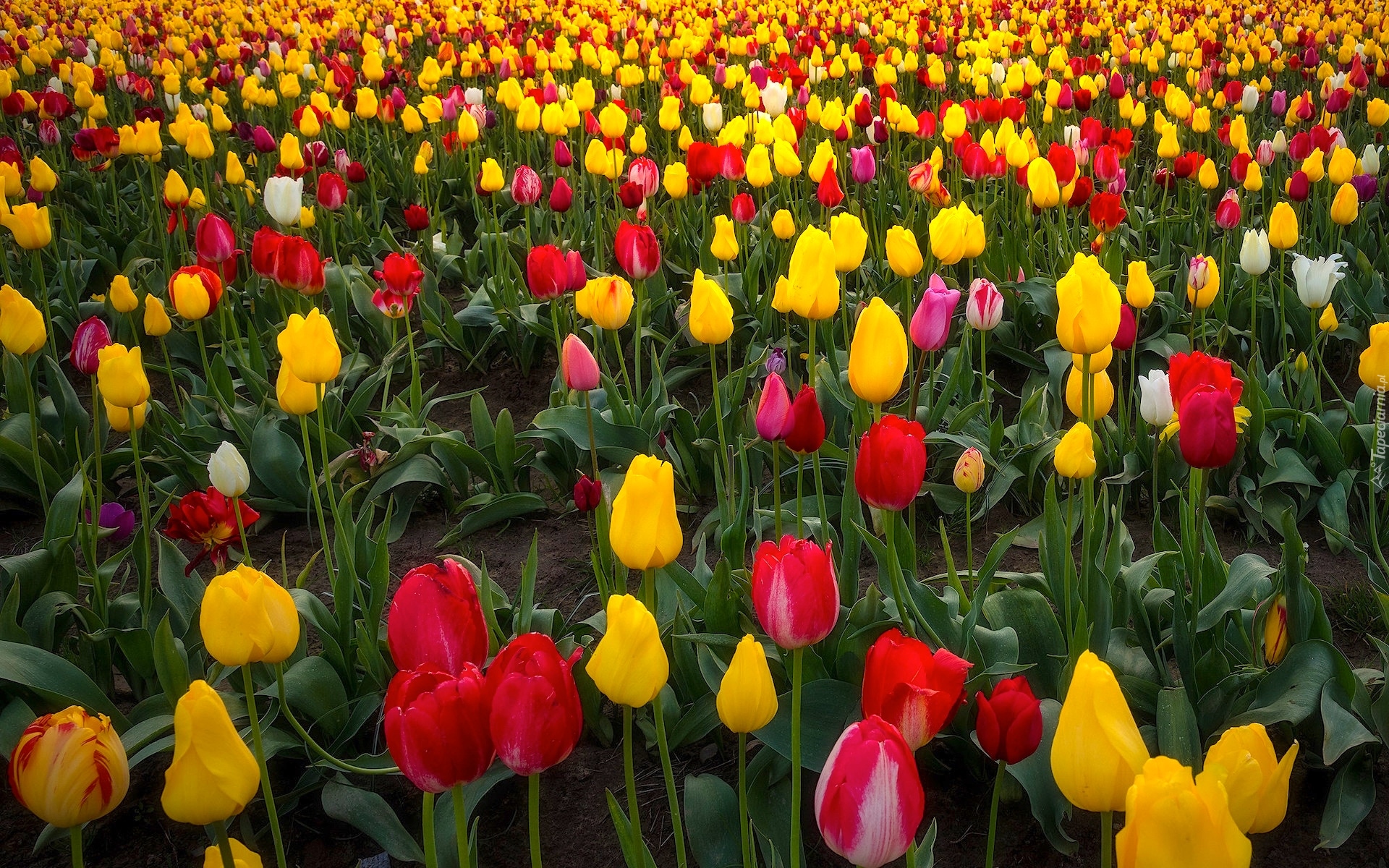 Edytor tapety: Kolorowe tulipany na farmie Wooden Shoe Tulip Farm