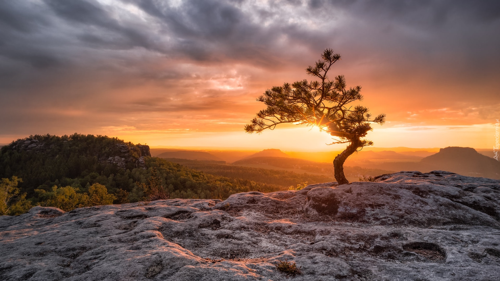 Edytor tapety: Sosna na tle wschodu słońca