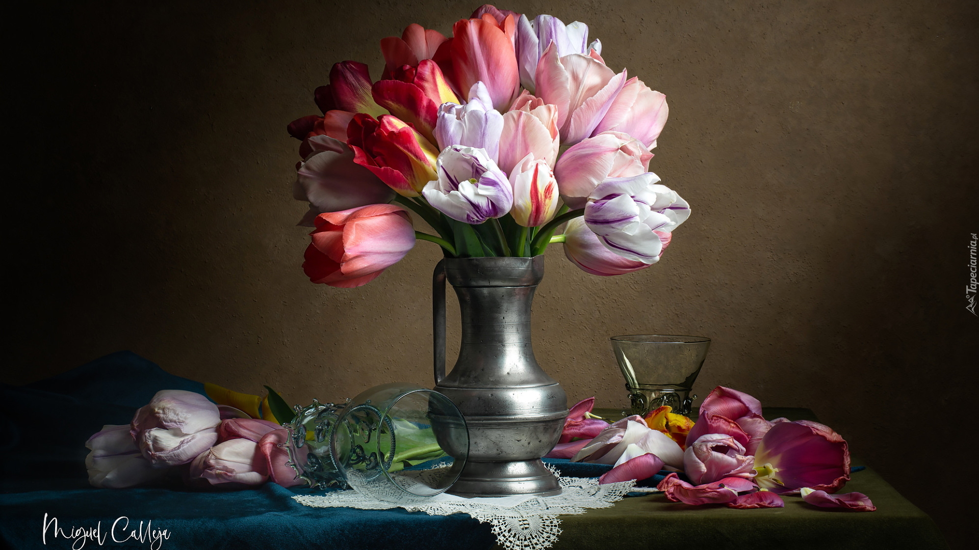 Edytor tapety: Tulipany w srebrnym dzbanku