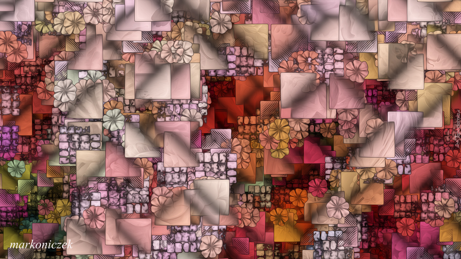 Edytor tapety: Kolorowe kwadraty i kwiaty w grafice