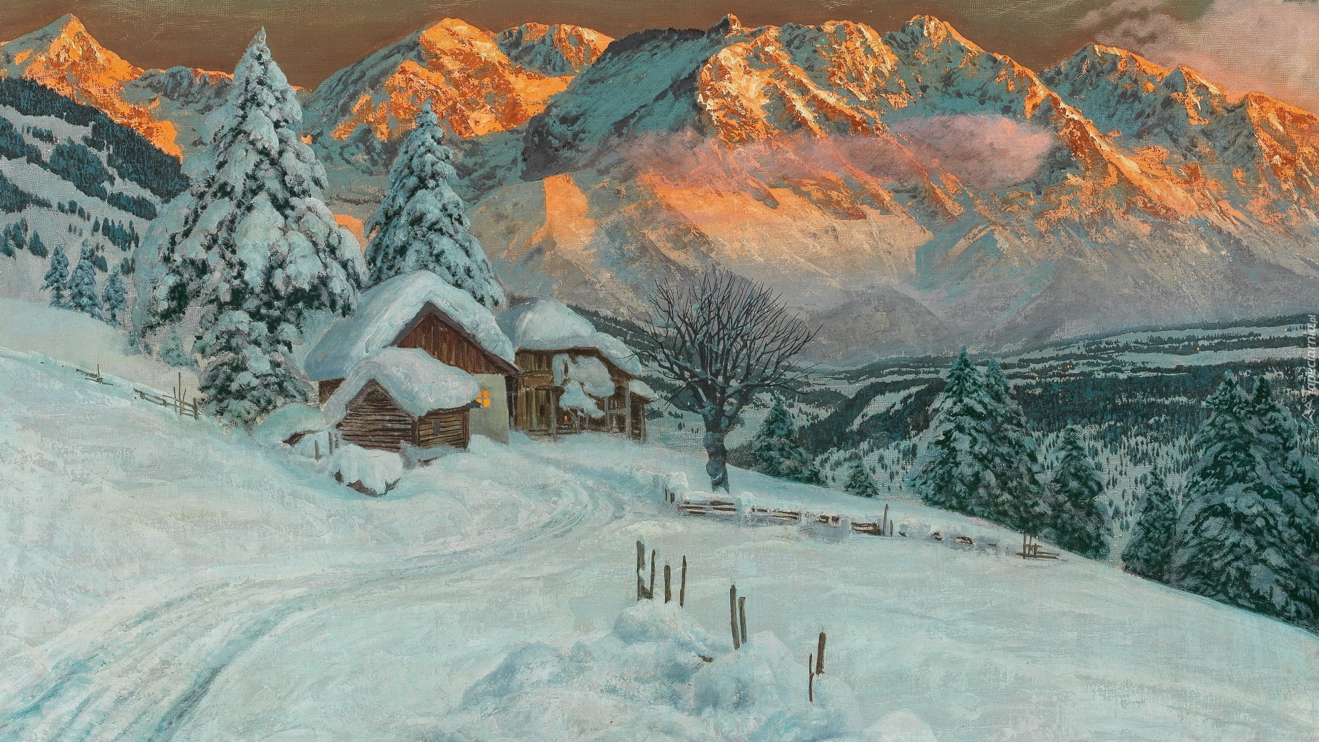 Edytor tapety: Zima w górach na obrazie Aloisa Arneggera