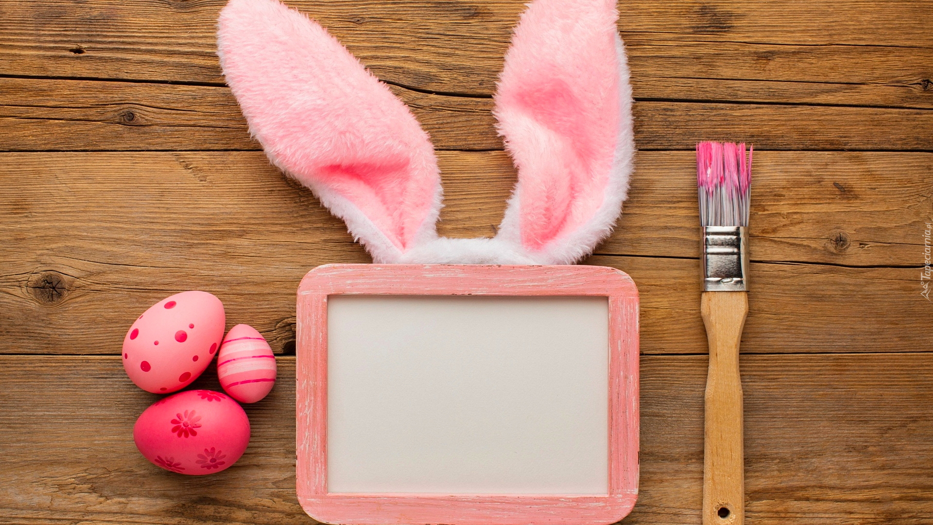 Edytor tapety: Ramka z uszami zająca obok pisanek