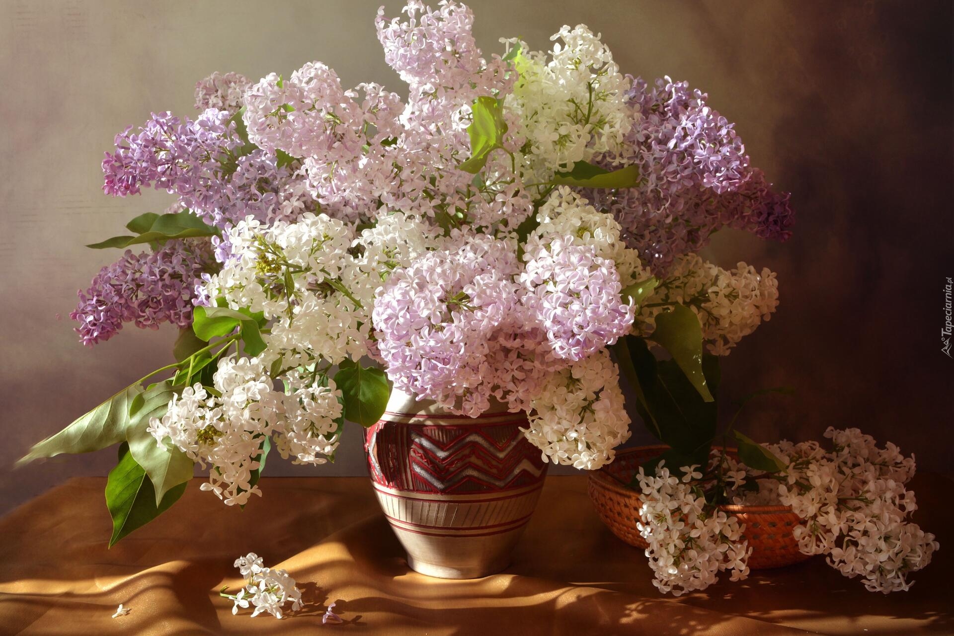 Edytor tapety: Bez w wazonie i koszyku