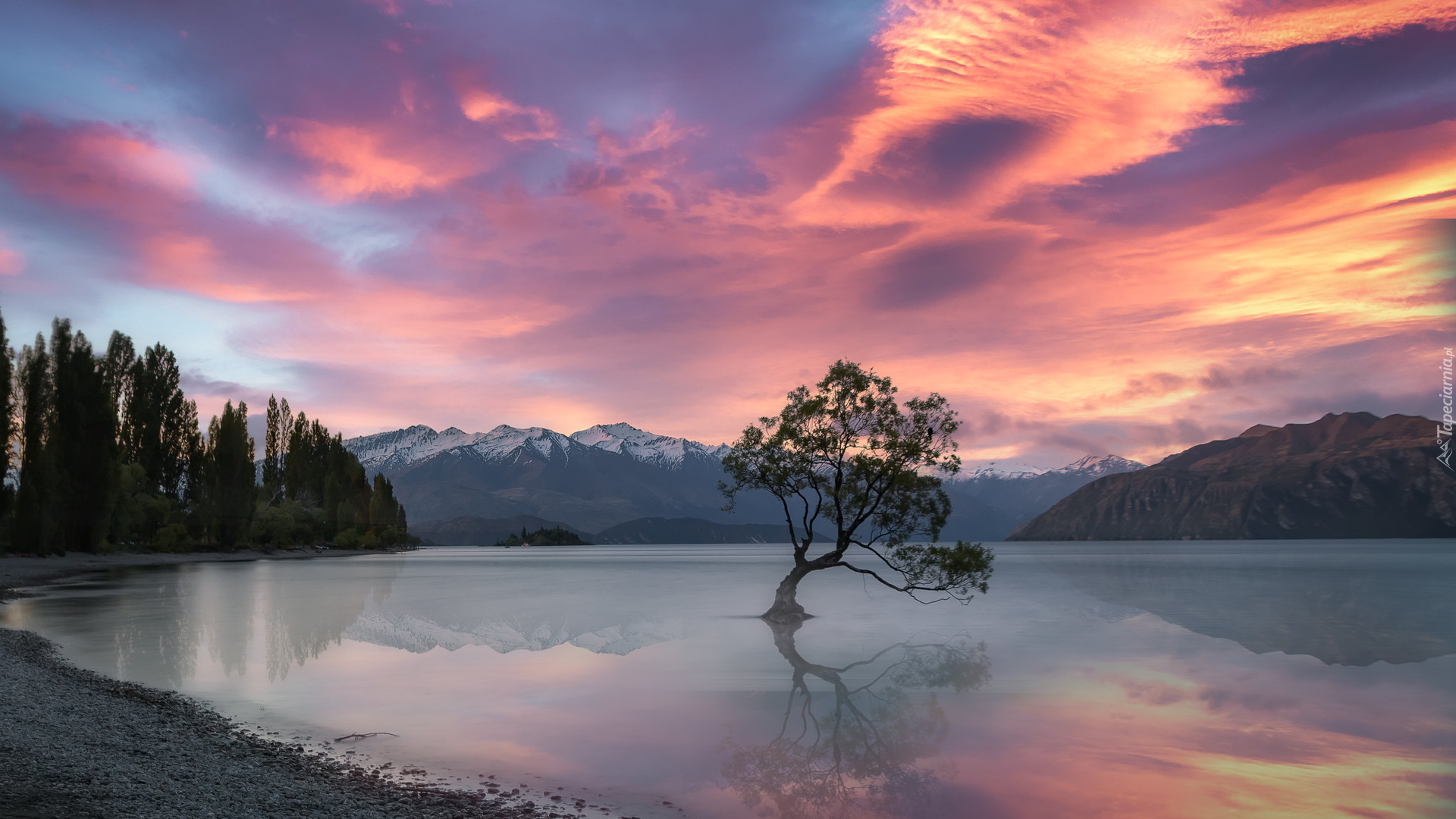 Edytor tapety: Samotne drzewo na Jeziorze Wanaka o zachodzie słońca
