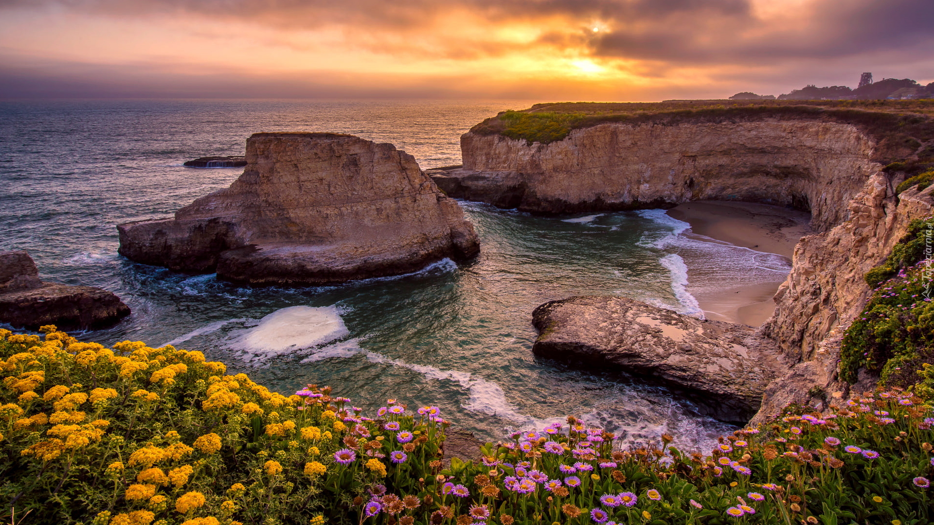 Edytor tapety: Klify i plaża Shark Fin Cove w Davenport