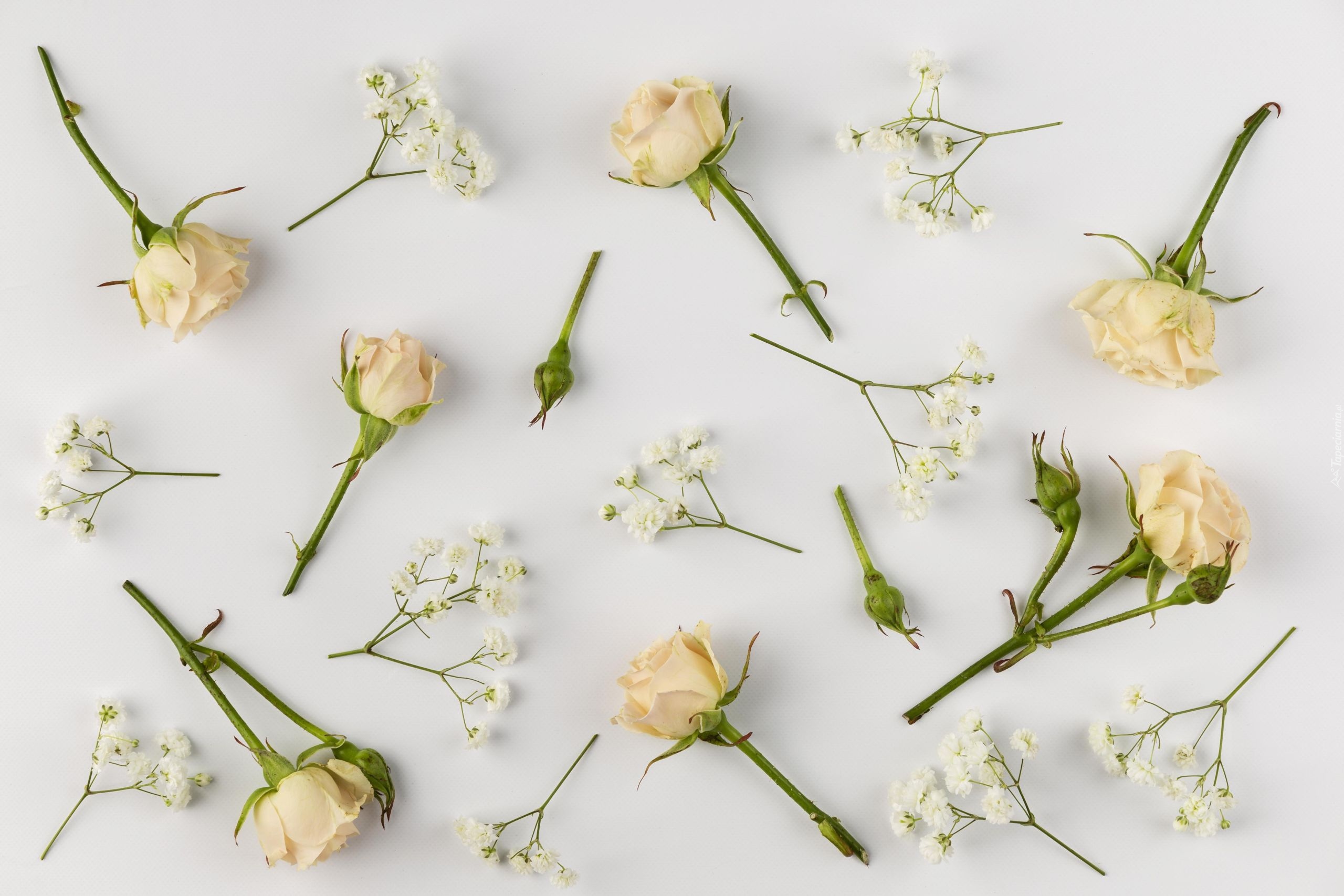Edytor tapety: Róże i gałązki gipsówki na jasnym tle