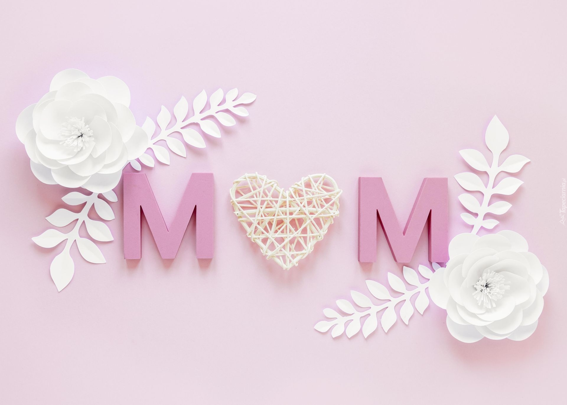 Edytor tapety: Białe papierowe kwiaty obok napisu Mom