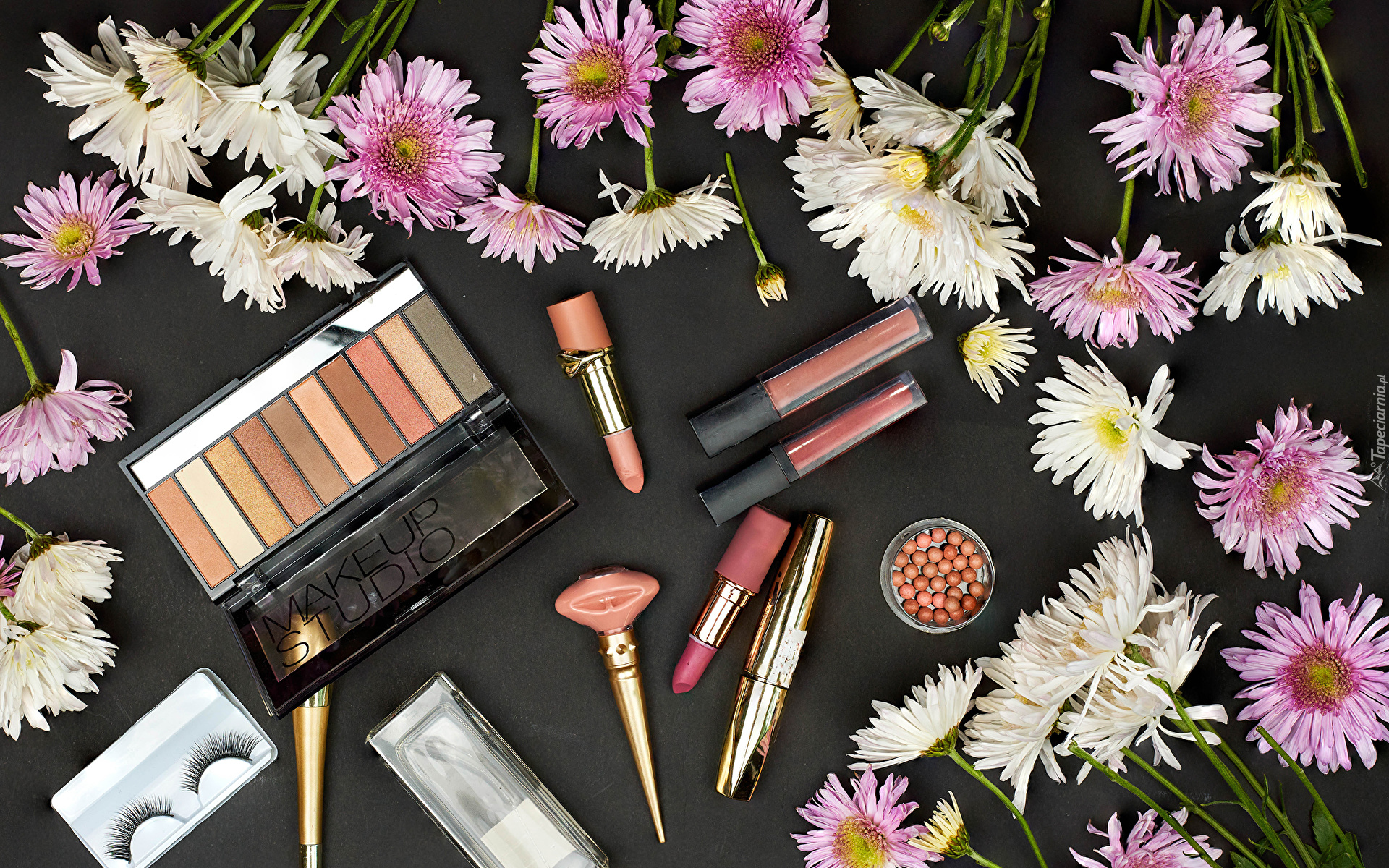 Edytor tapety: Kosmetyki wśród chryzantem