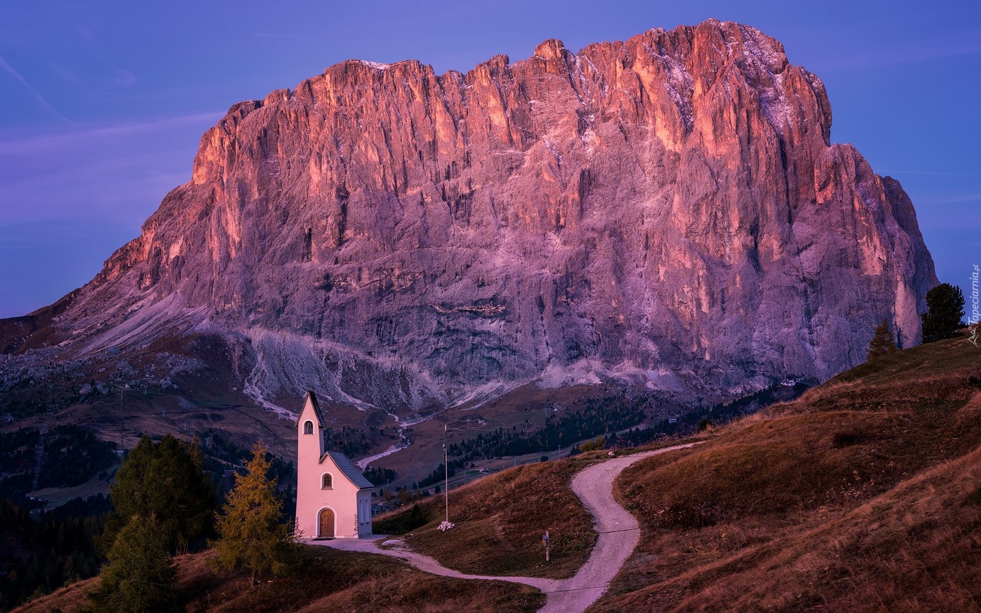 Edytor tapety: Kościół na tle gór