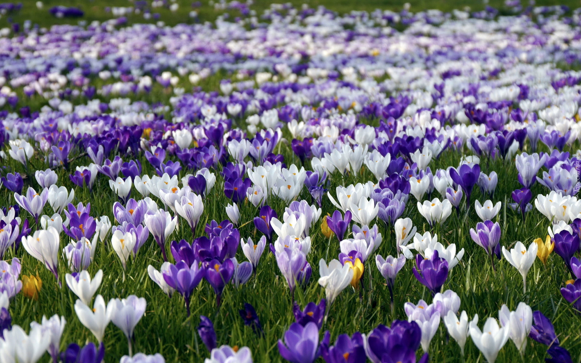 Edytor tapety: Białe i fioletowe krokusy na łące
