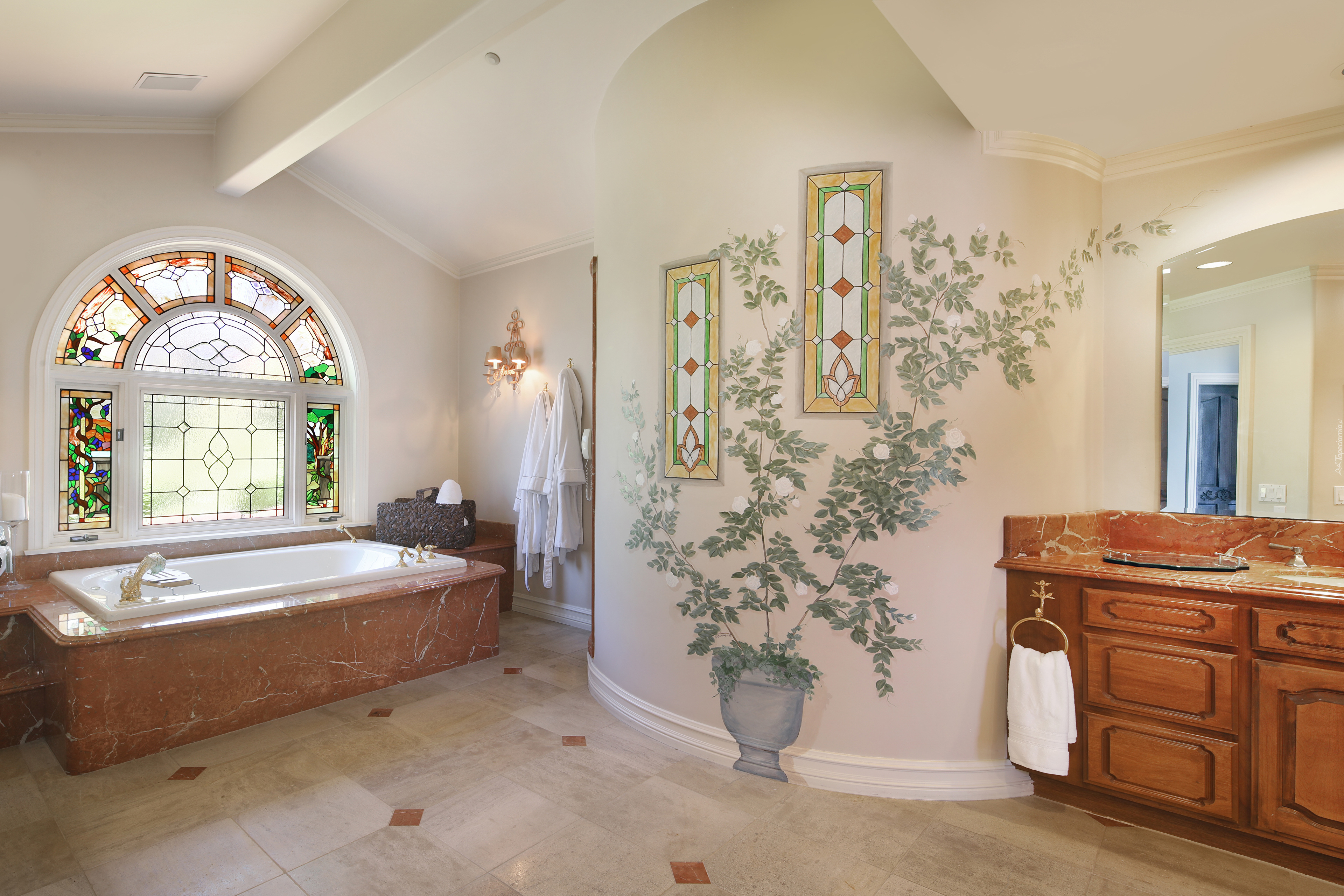 Edytor tapety: Wanna przy witrażowym oknie w łazience
