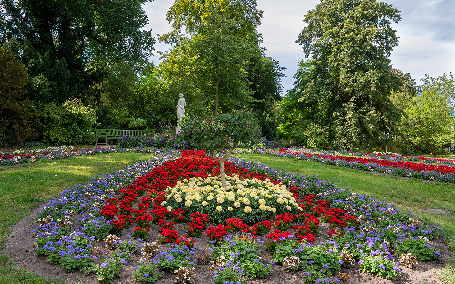 Edytor tapety: Rabaty i posąg w parku