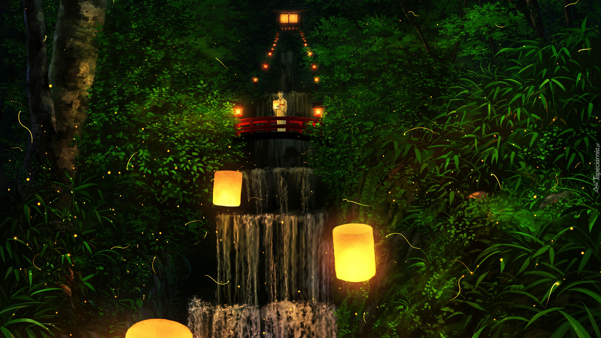 Edytor tapety: Latarnie obok wodospadu